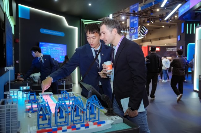 沿展区深入,AI深度融入行业肌理的力量愈发生动。在AI+新型工业化展区,中国移动正通过沙盘演示面向石油化工行业打造的AI大模型服务体系,可将报表传递时间从1天压缩至1小时,装置平稳率跃升至99.9%,十余个高价值场景贯穿全链。AI+智慧城市依托AI实现城市治理事件秒级响应与闭环处置,为城市全域数字化转型筑牢基础,持续提升全球城市现代化管理水平。此外,AI+智慧港口、AI+智慧教学等一系列解决方案,正将AI赋能千行百业从“中国方案”变为可复制的全球实践。